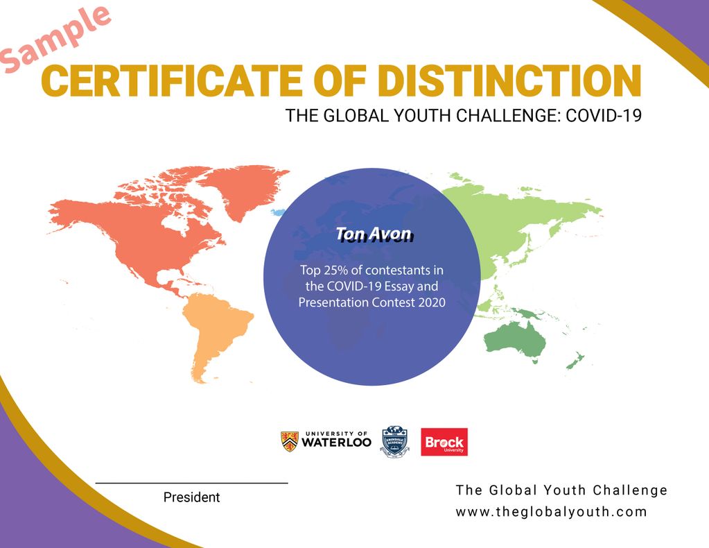 For example, a participant who looks at COVID-19 from a historical viewpoint can make a comparison of the epidemics throughout history and how COVID-19 has changed history. An art lover can create a piece of artwork, write about it, and present his/her ideas about the impacts of COVID-19 on humanity as a whole. A student who is interested in business studies can show his/her thoughts on the consequences of COVID-19 as well as solutions during and after the pandemic to businesses and the entire economy of his/her country and the world. Students interested in sciences can illustrate their thinking of medical solutions to helping prevent the spread of the virus.