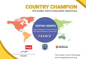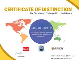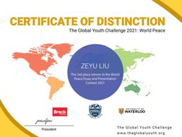 We are proud to announce the winners of the 2021 Global Youth Challenge. This year, The Global Youth Challenge hosted students from around the world who gathered together online to present compelling strategies for fostering world peace. Through a variety of visual arts mediums, written essays, different historical lenses, and business proposals, each finalist carefully crafted a presentation to challenge issues that prevent humanity from living peacefully. Participants presented persuasive arguments on topics such as racism, famine, the need for proper education, and police brutality to a panel of reputable judges from universities across Canada. We applaud each of the contest winners on their dedication, hard work, and inspiring presentations!